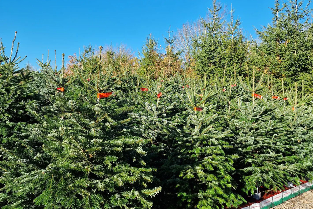 From 5ft to 16ft we have a large selection of non-drop Normann firs to choose from. There are also freshly dressed wreaths or beautiful pot grown trees available.